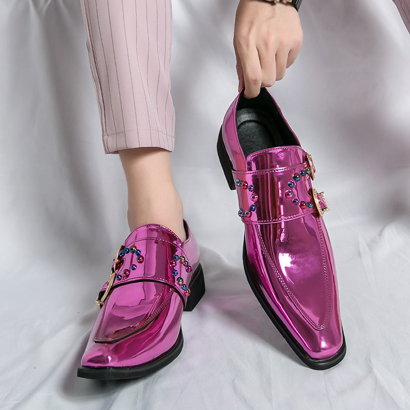 Patent Leather Purple a sleek platform design with a pointed toe, these elegant shoes are adorned with shiny rhinestones for a touch of glamour. The Chelsea-style construction ensures a comfortable fit, while the breathable material enhances wearability.