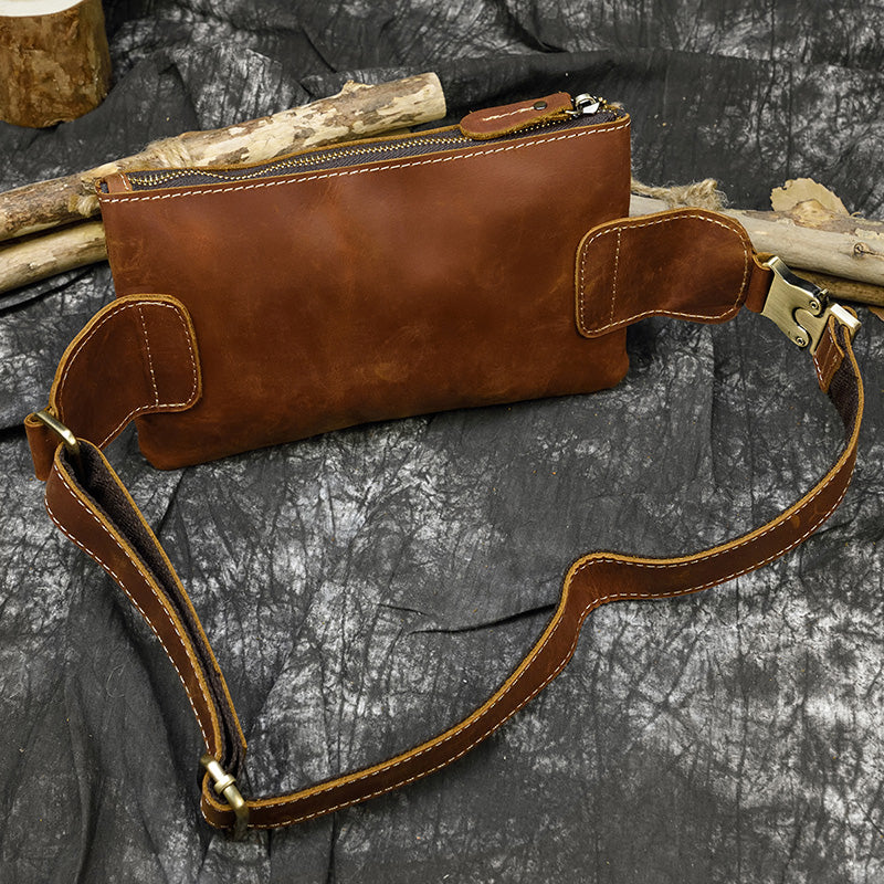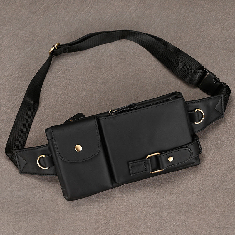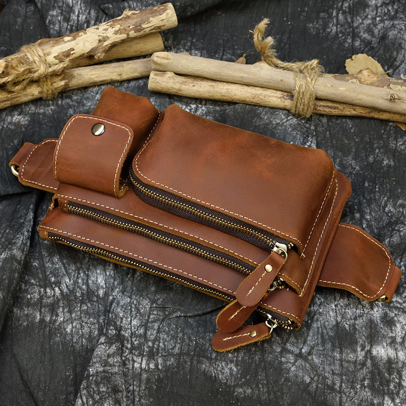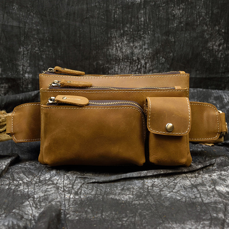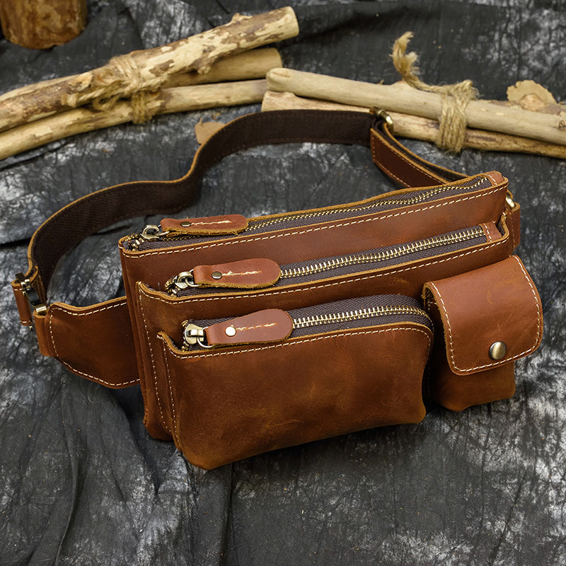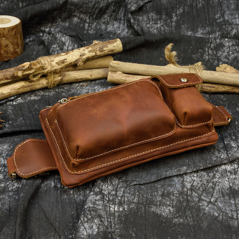 Men Leather Waist Bag Outdoor Waist Belt Pouch Bag