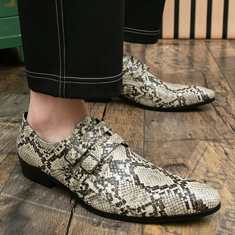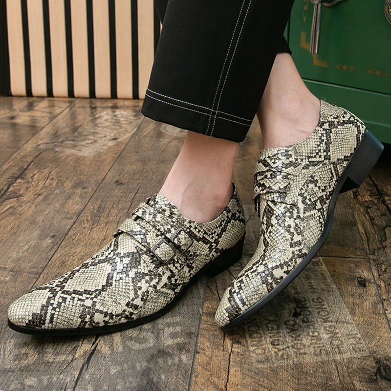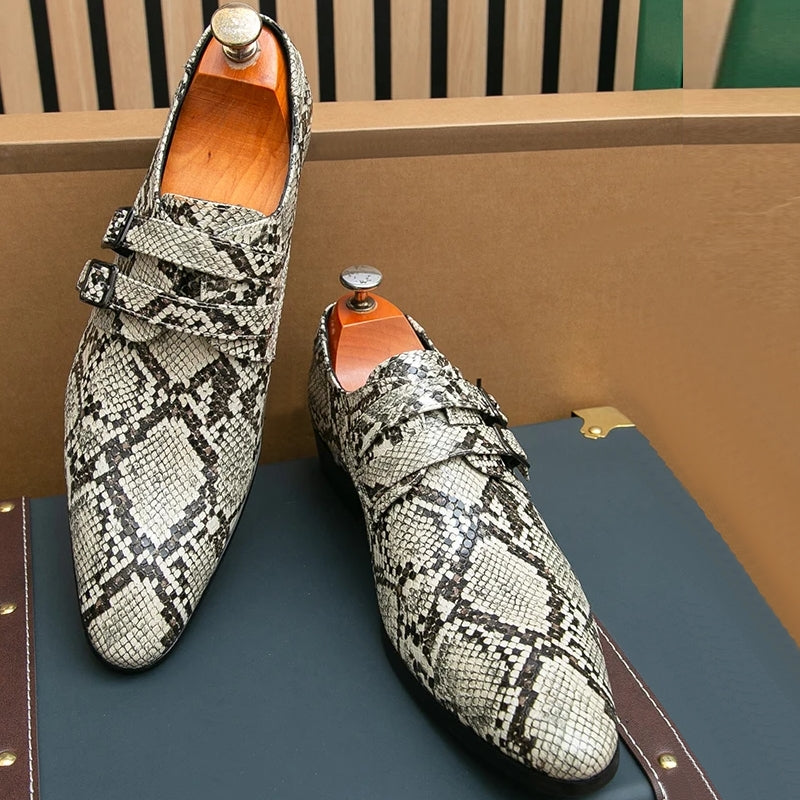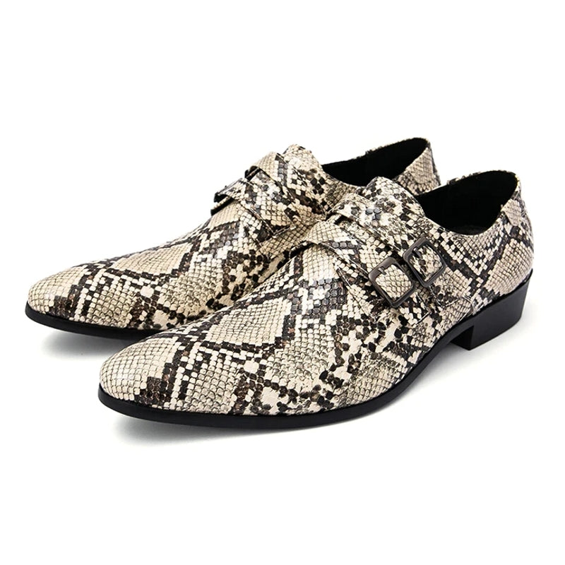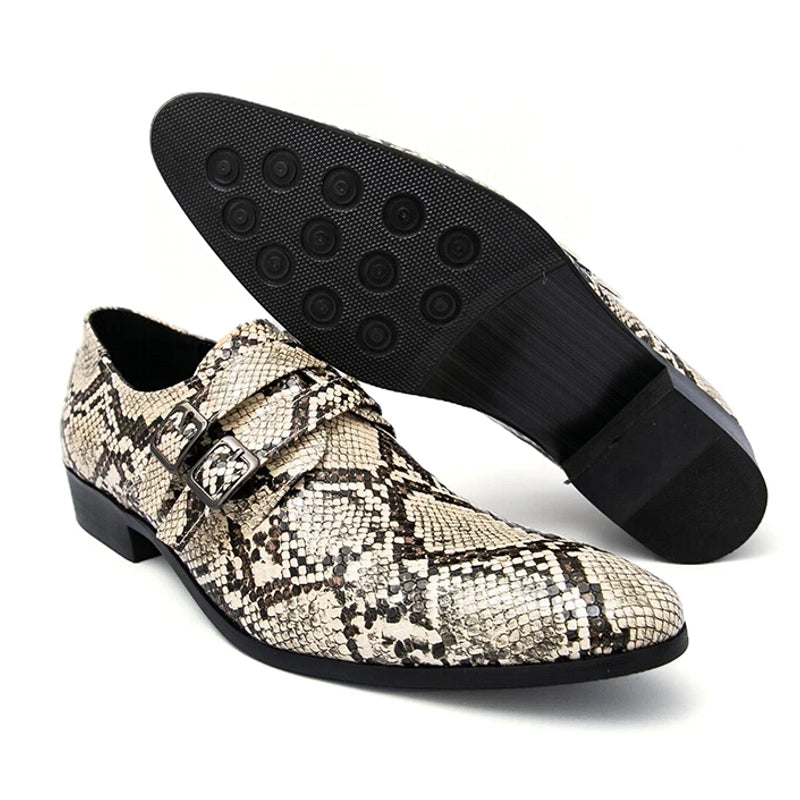 Stylish men Chelsea shoes feature a snake print design and a double buckle detail, Crafted from high-quality PU material for both the outer and lining, they ensure durability and comfort. The insole is made from EVA for added cushioning, while the rubber outsole provides excellent grip and support.