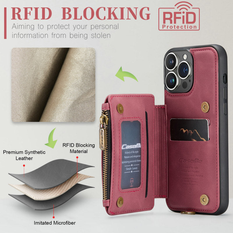 Retro Leather Back Case For iPhone Zipper Back Cover Wallet