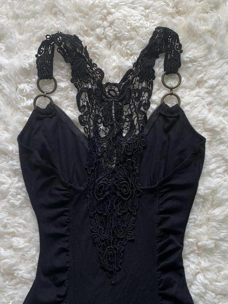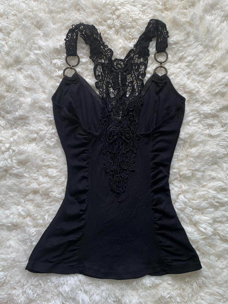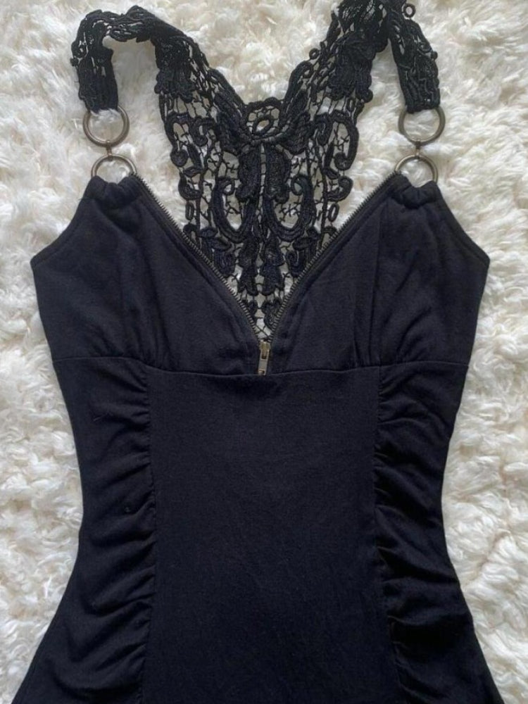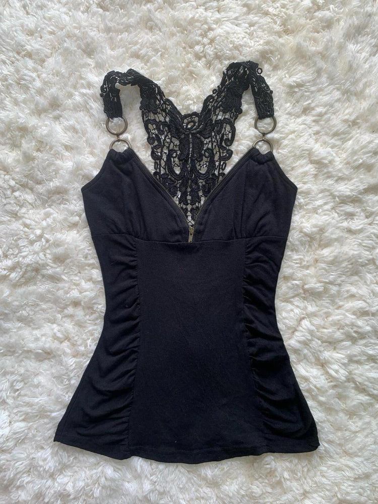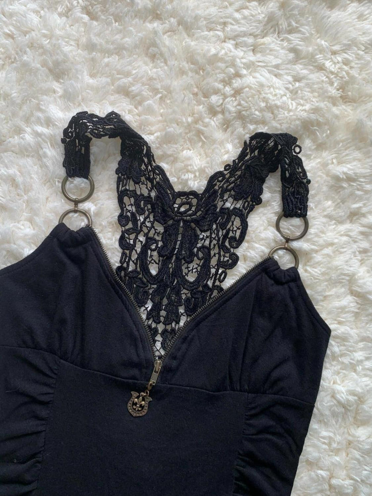 Retro Spice Girl Lace Zipper Black Tops