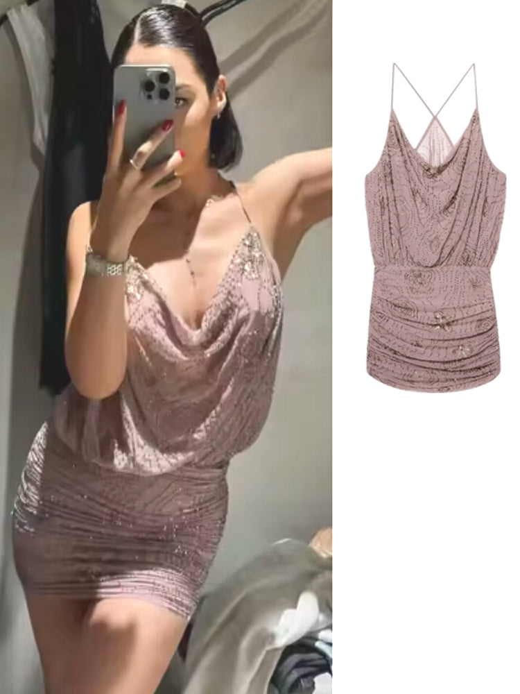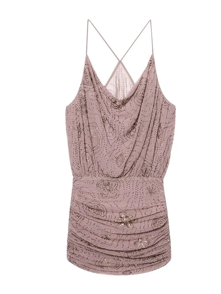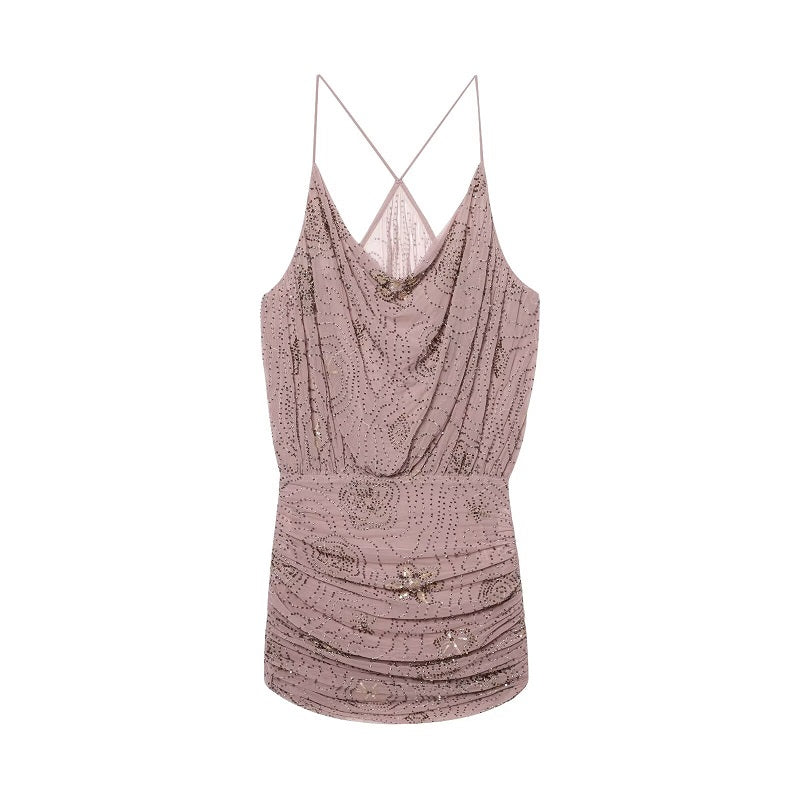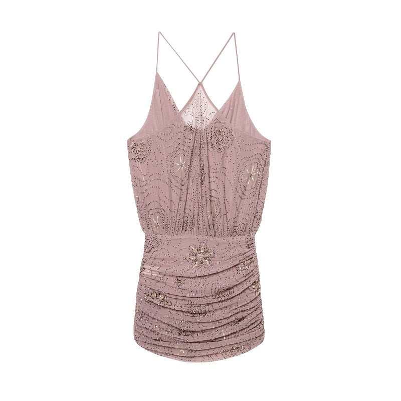 Sequin Tulle Women Ruched Slip Blouse