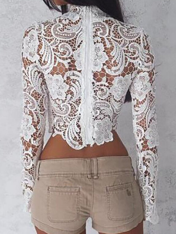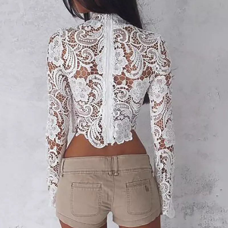 Sexy Short Tops Floral Ladies Shirt Blouses