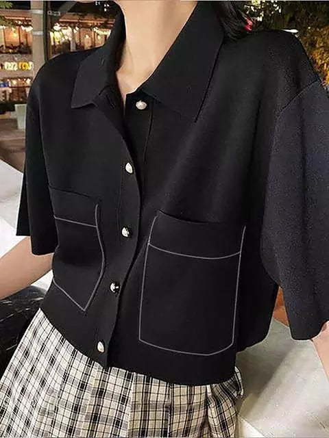 Fashion Short Shirts Women Summer Short Sleeve Lapel Button Up Shirt Casual Contrast Color Stitches