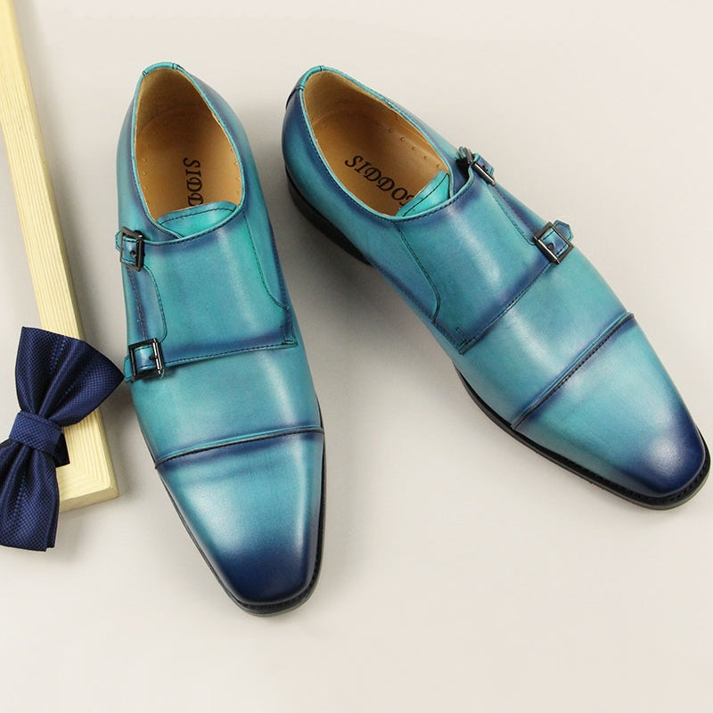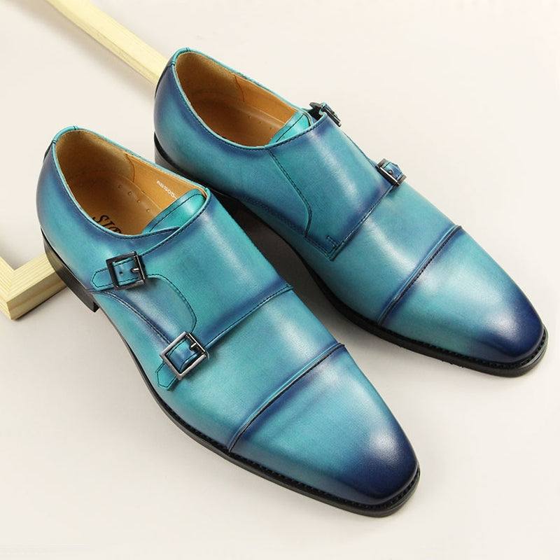 Sky Blue Men Shoes Genuine Leather Monk Strap Penny Shoes