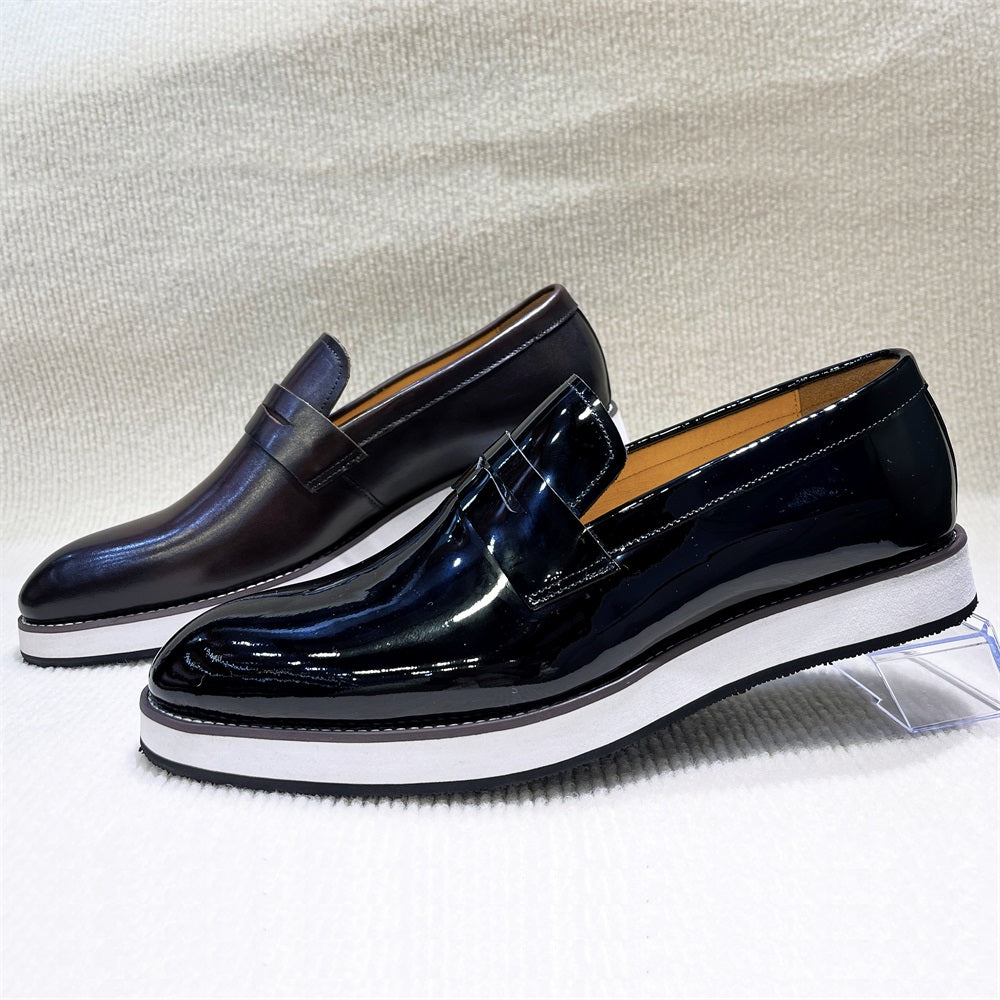 - Shiny Black Sport Loafers: Versatile, sleek, & comfy for work or play.