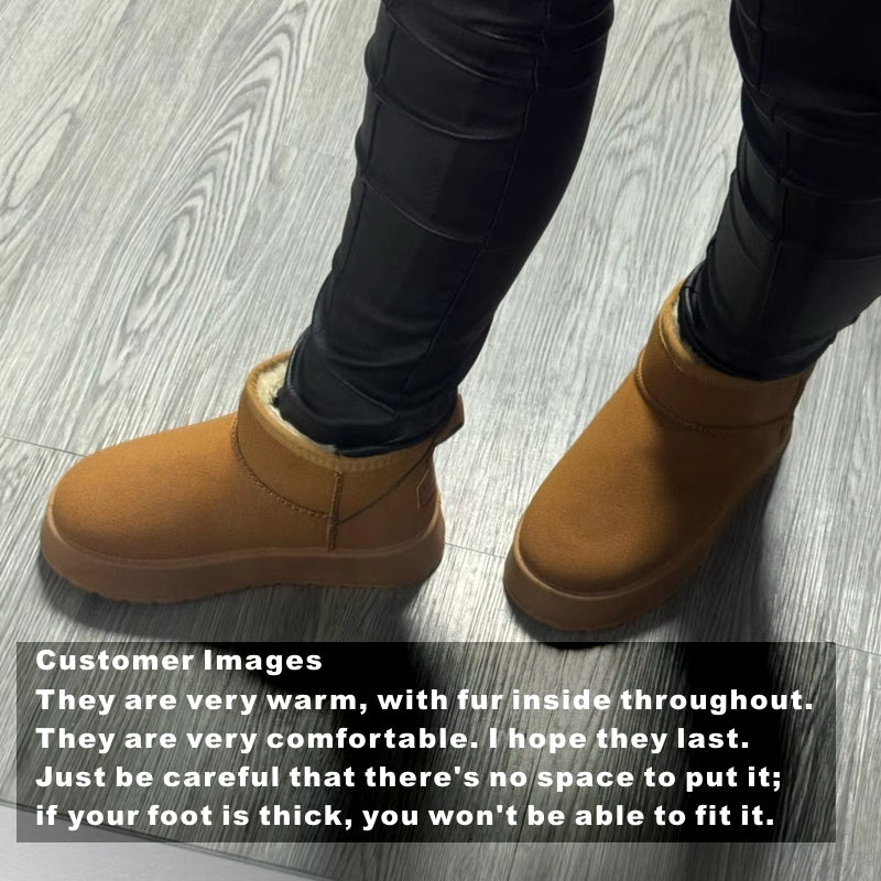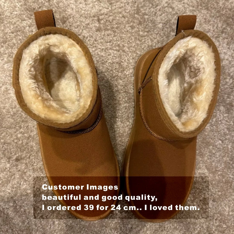 These Thick Plush Platform Snow Boots are perfect for women looking to stay warm and stylish during the winter season. Designed with faux suede and padded for extra comfort, these slip-on ankle boots feature a cozy fur lining to keep your feet snug in cold weather. Ideal for casual outings or snowy adventures, they combine functionality with a chic aesthetic.