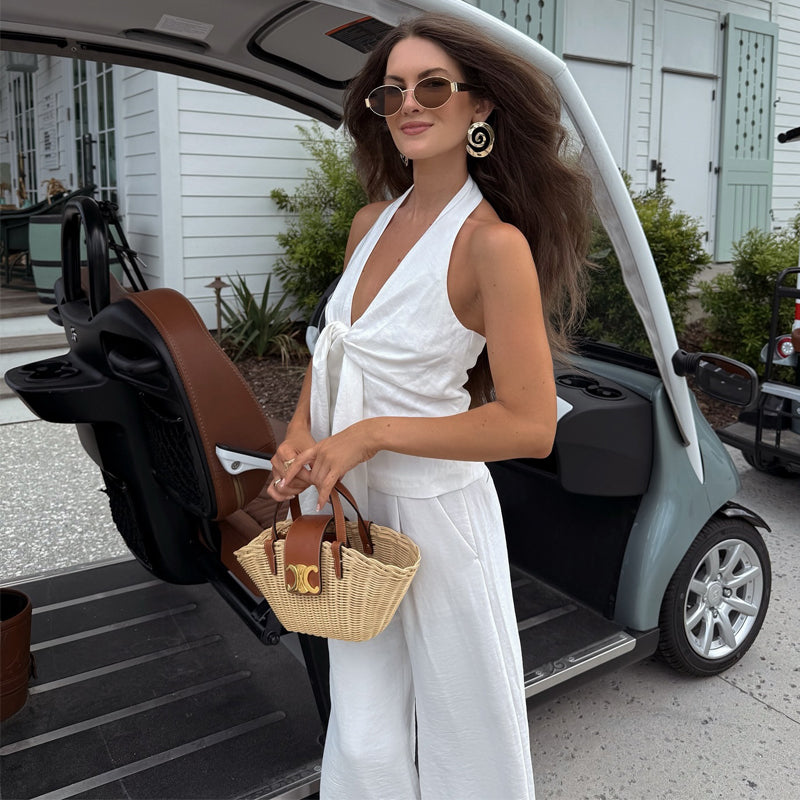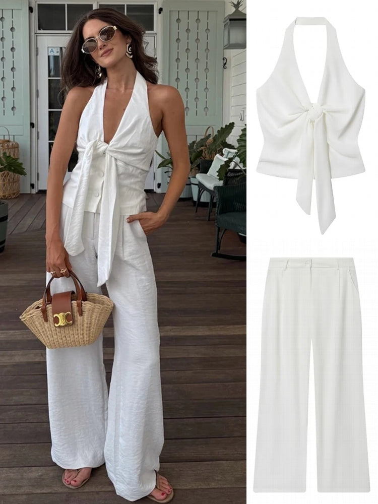 White Baggy Pants For Women 2 Pieces High Waist Women Trousers Suits Wide Leg Women's Pants Sets Off Shoulder Crop Top
