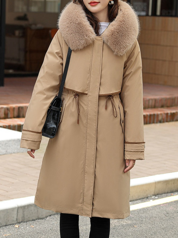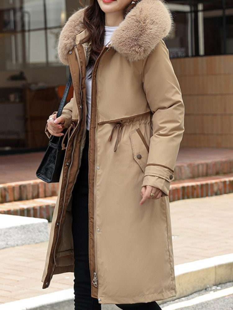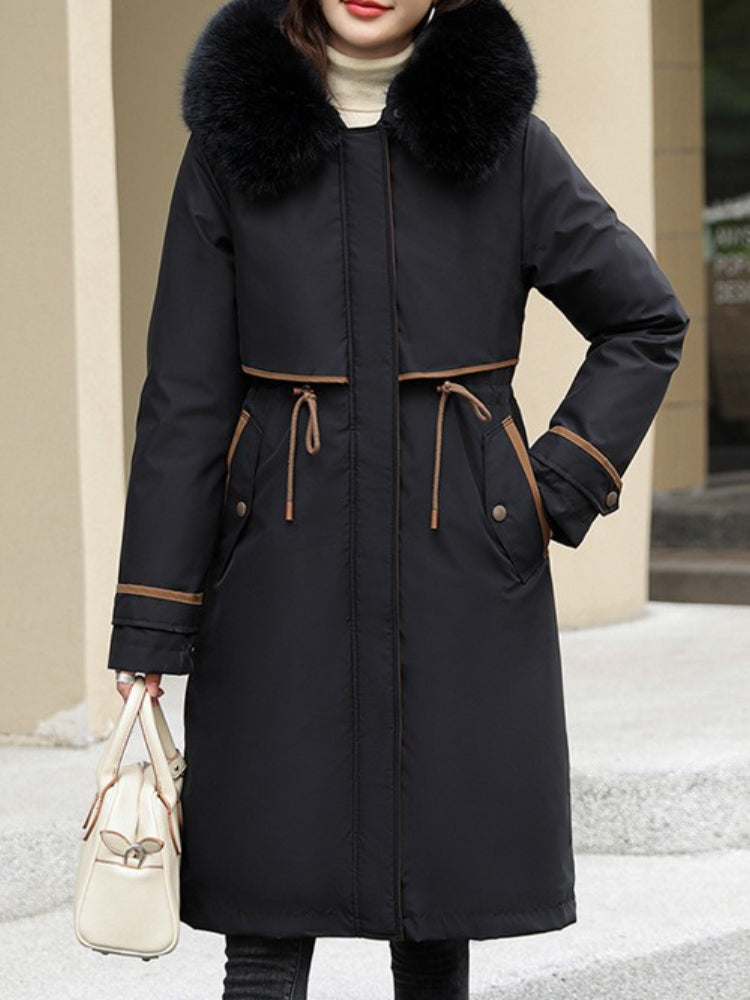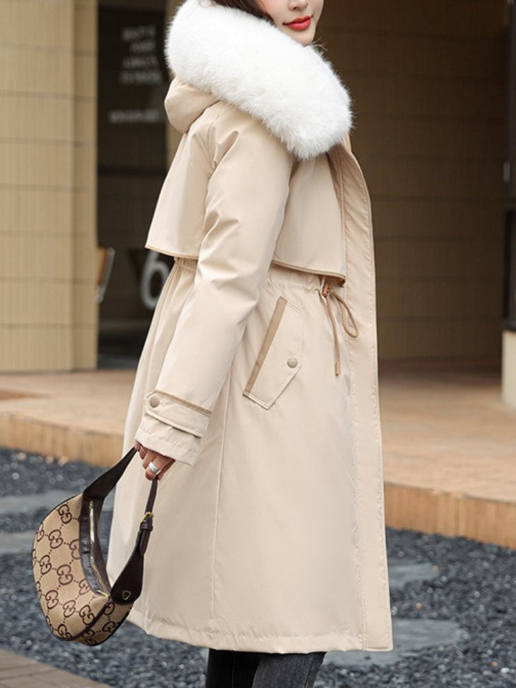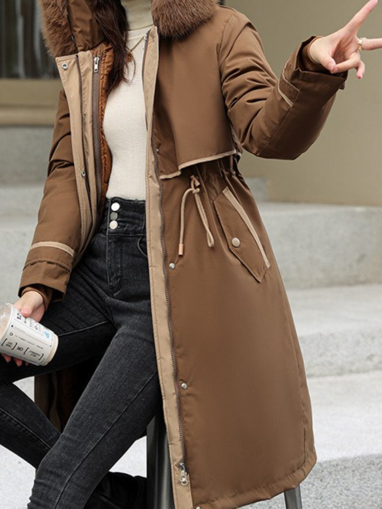 This winter parka jacket is designed with a polyester outer layer and a midi length for optimal coverage. It features a cotton-filled interior for extra warmth and insulation, along with a hooded design to protect against cold weather. Ideal for staying cozy during chilly conditions.
