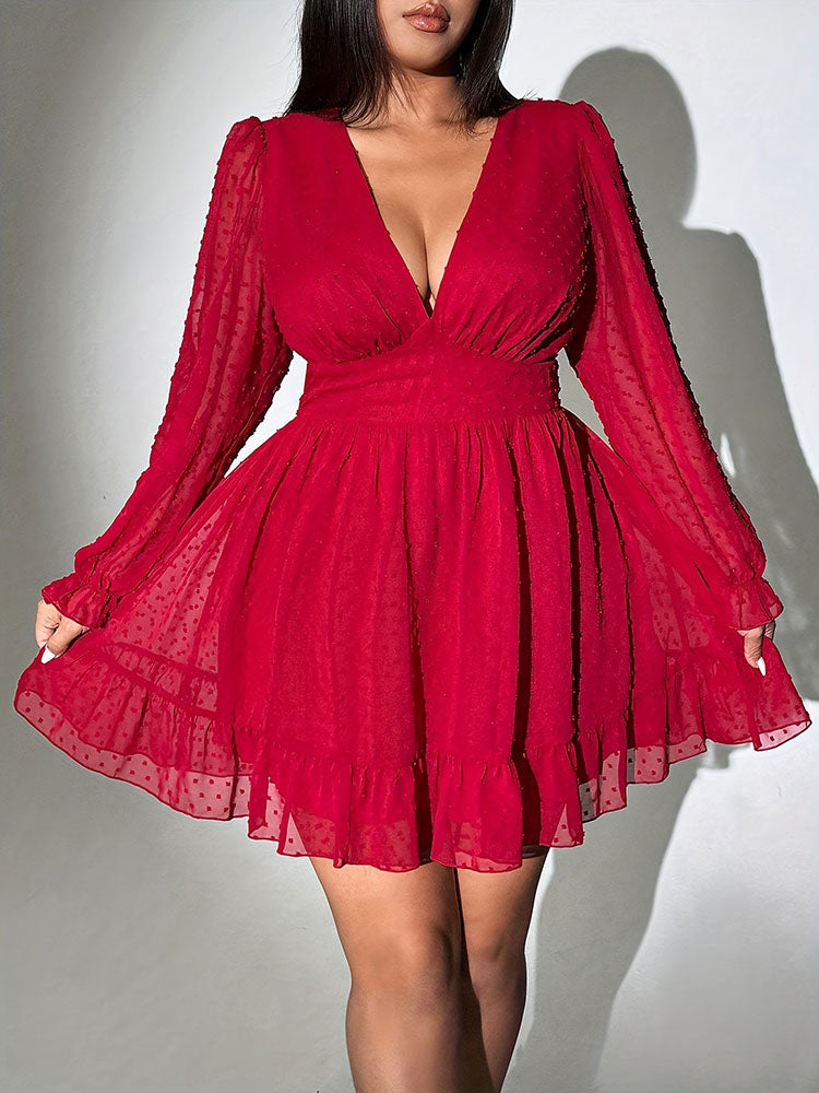 Collections:Clothing, Mini Dresses, Plus Size Dresses, Polka Dot Pattern, Solid Color Dresses, Women's Clothing