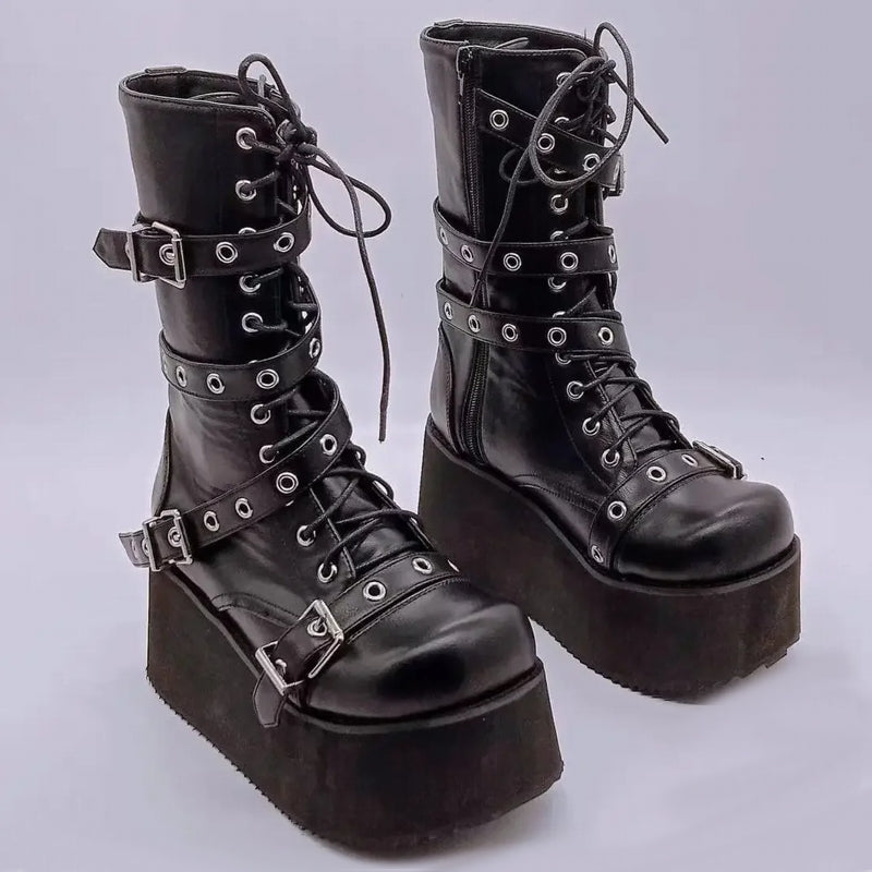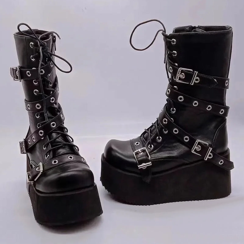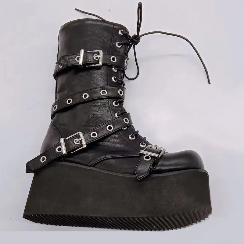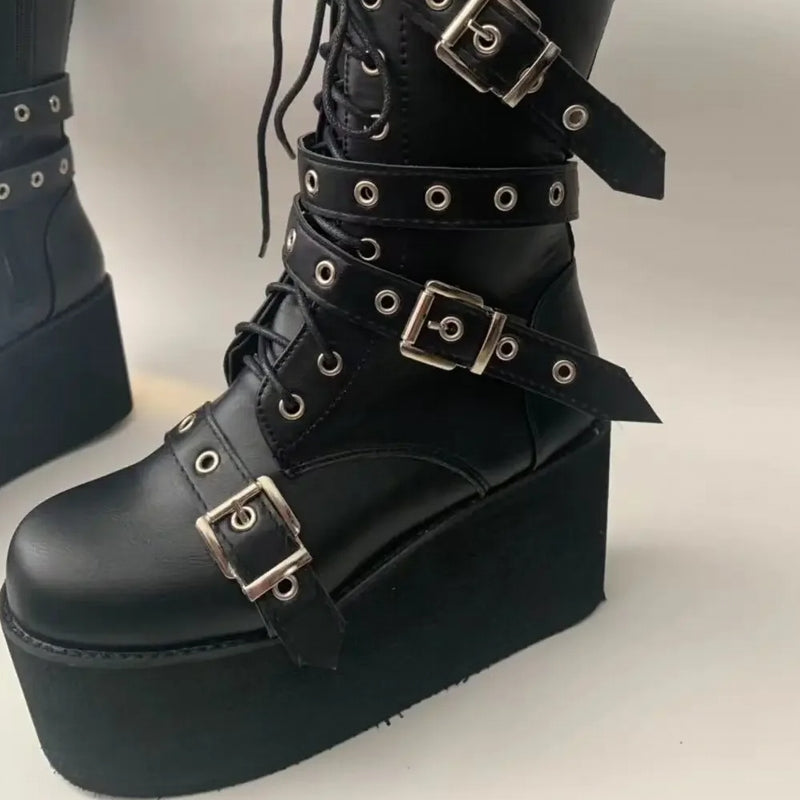 Women Boots Buckle Round Toe Wedges Platform Boots