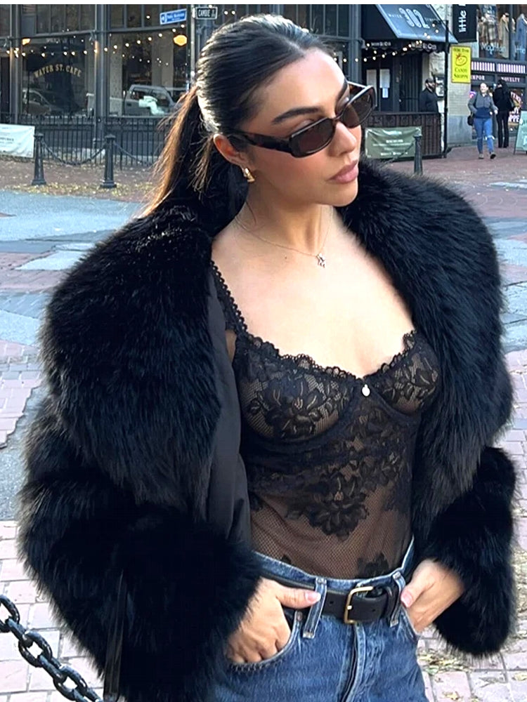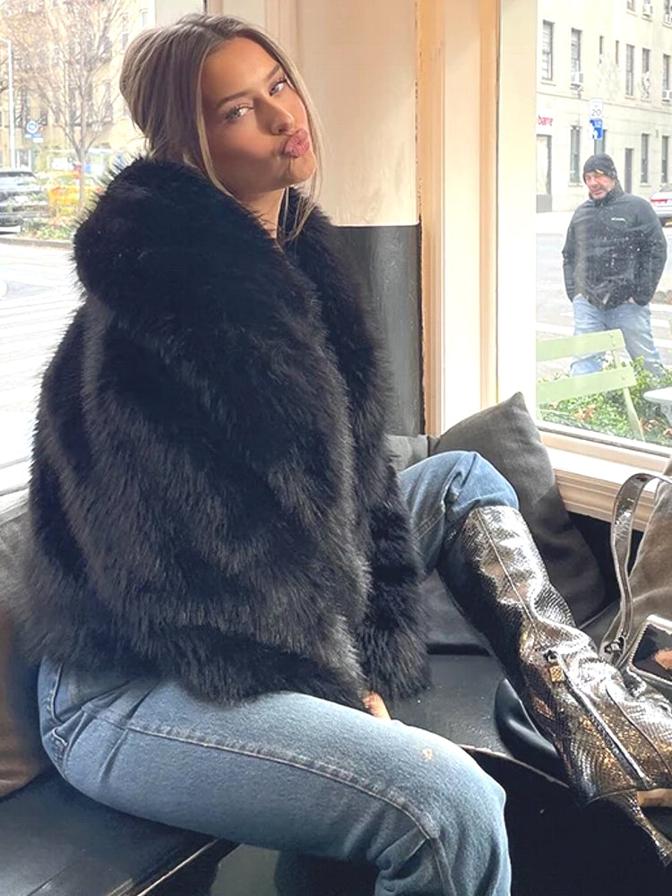 Women Winter Short Fur Jacket Vintage Chic Overcoat